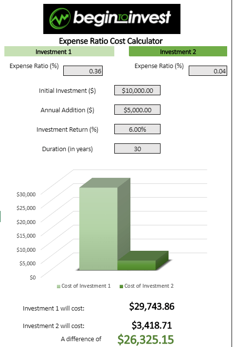 Those numbers make a BIG difference, and we’re not even including the other administrative fees. Plugging them into a calculator we get: