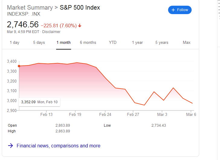 Look at the market right now. We are on a roughly 11 percent decline in the S&P 500 since the end of February, with today’s 7 percent drop overall and the crush of oil bringing it home. At bare minimum, the market is much cheaper than it was a few weeks past.